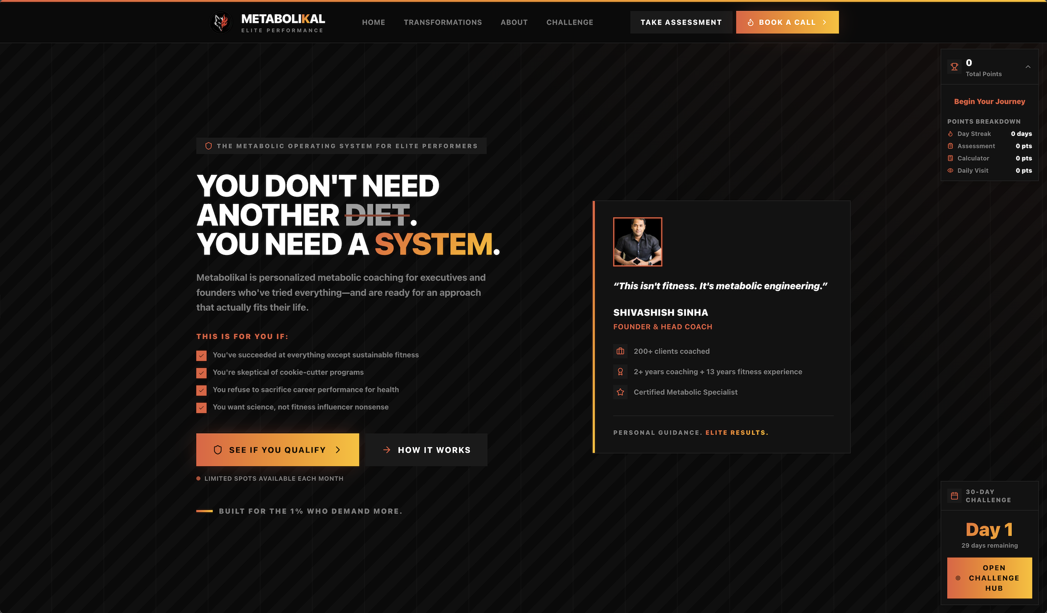 ↗ metabolikal.comA health coach needed three products in two weeks: acquisition, client management, and admin. Three portals, one codebase, zero shortcuts.