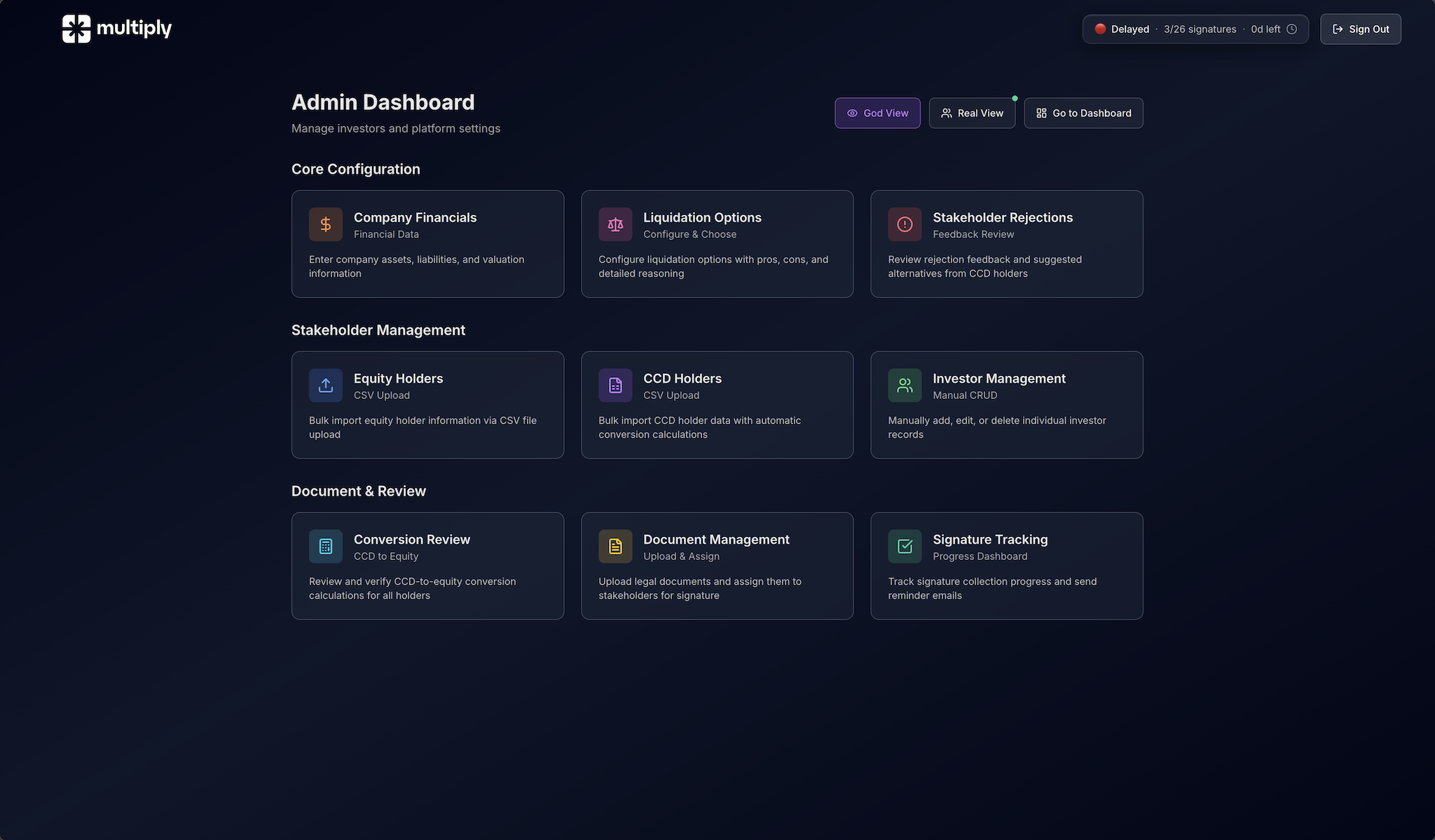 ↗ multiply.club/windupA startup needed to wind down cleanly with multiple stakeholders, complex financials, legal documents, and full audit trails. Spreadsheets weren't going to cut it.